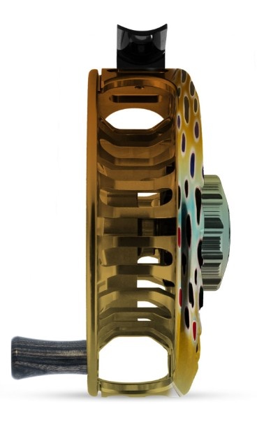 This custom configuration features Abel’s Native Brown anodized artwork, hand-painted to replicate the rich patterning and hues of a wild brown trout. The matching Native Brown drag knob completes the aesthetic, while the Ebony wood handle adds a warm, natural accent that enhances grip and elevates the reel’s overall presentation.