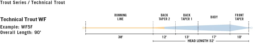 RIO’s TECHNICAL TROUT line features a long, fine front taper for the lightest of presentations and delicacy and is the ideal choice of line when fishing dry flies, nymphs, soft hackles and emergers to tricky eaters at distance. The line has a long head and back taper to increase loop control when carrying long lengths, and for making precise casts to rising fish, while the weight distribution makes it easy to turn over long leaders for technical feeders at range.