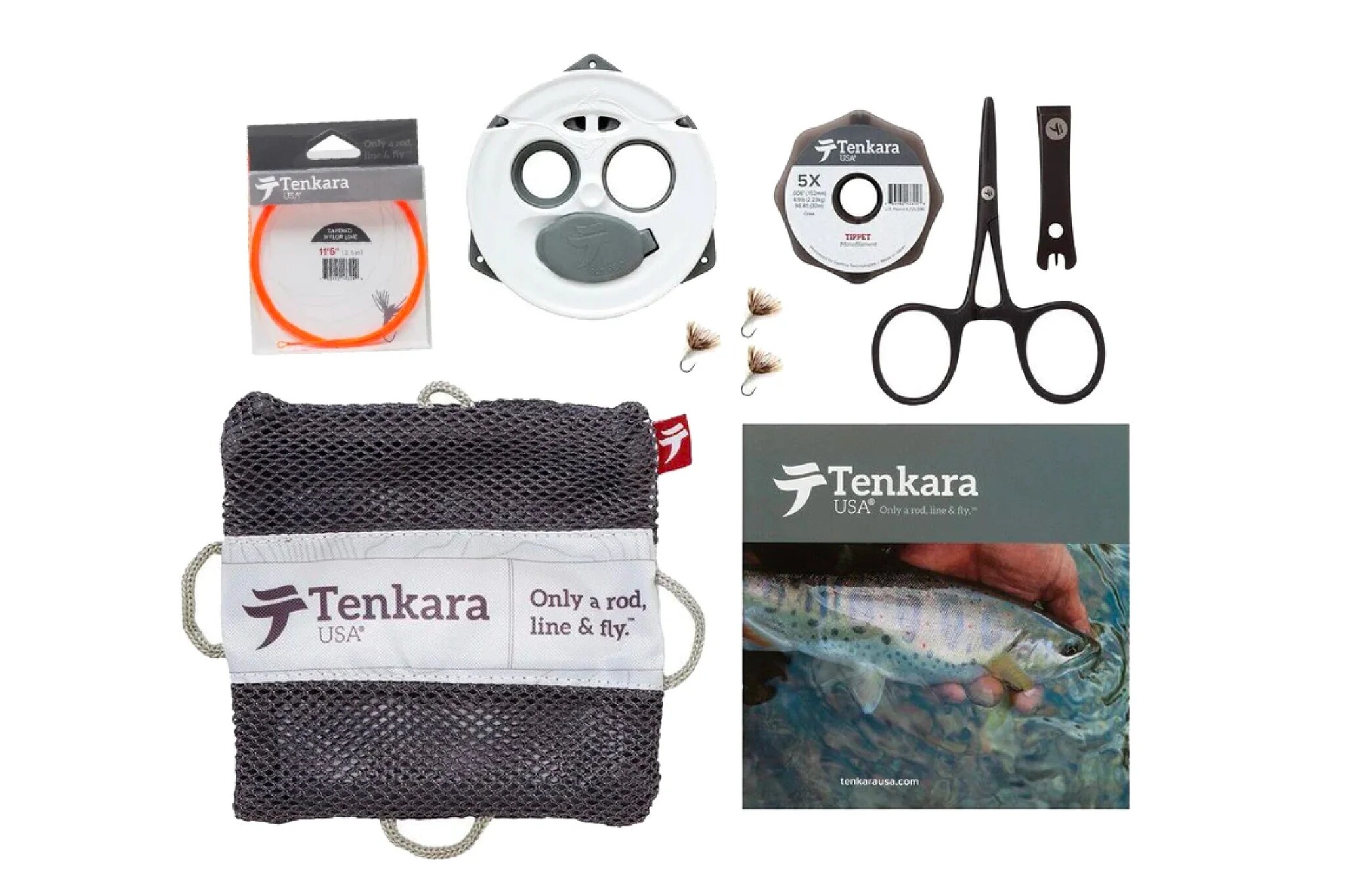 Complete starter pack with line, Keeper™, flies, tippet, forceps, nippers, and booklet—just add a tenkara rod.