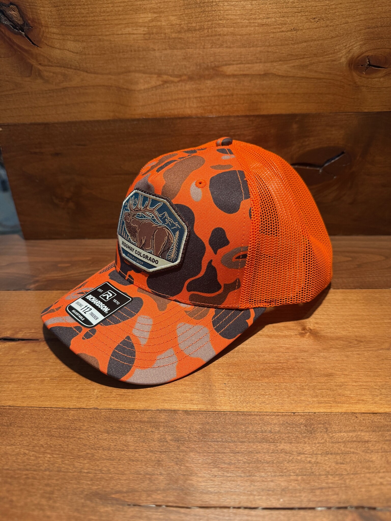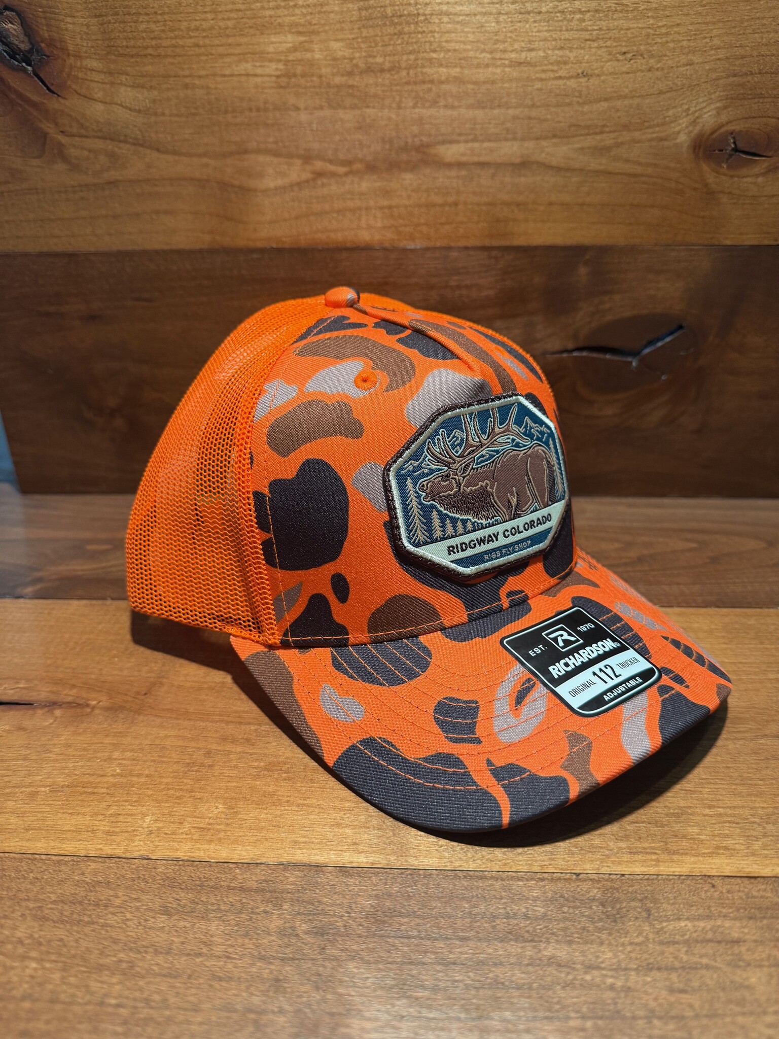 The Underwood Elk Ridgway Colorado Hat 112PFP in Blaze Camo combines rugged outdoor style with an unmistakable Colorado identity. Built on the classic 112PFP profile, this hat features a structured front, curved brim, and performance-mesh back for maximum airflow. The bold blaze camo pattern pairs with Underwood’s signature embroidered elk, honoring Ridgway’s hunting and mountain heritage. An adjustable snapback ensures a secure fit whether you're glassing ridges, fishing local waters, or repping Ridgway in town.